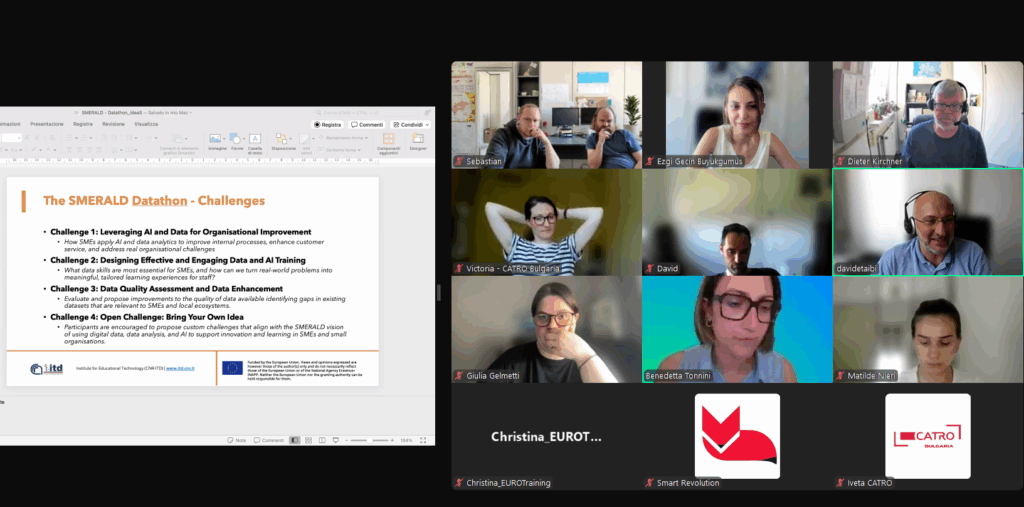 On 13–14 June 2025, the SMERALD partnership hosted its first Datathon in Palermo – a hands-on event designed to help SMEs, nonprofits, public authorities, and educators experience the practical use of digital data, data analysis, and AI.